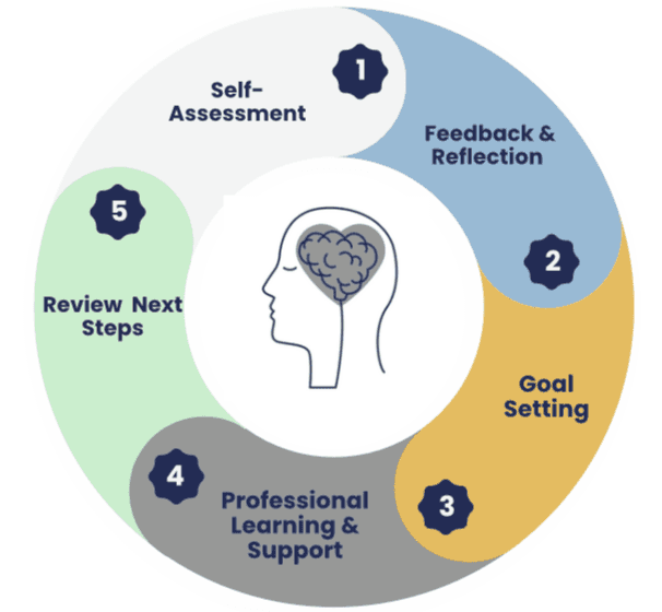Review & Next Steps – Growth is formally reviewed, and the cycle continues with updated goals and ongoing support.